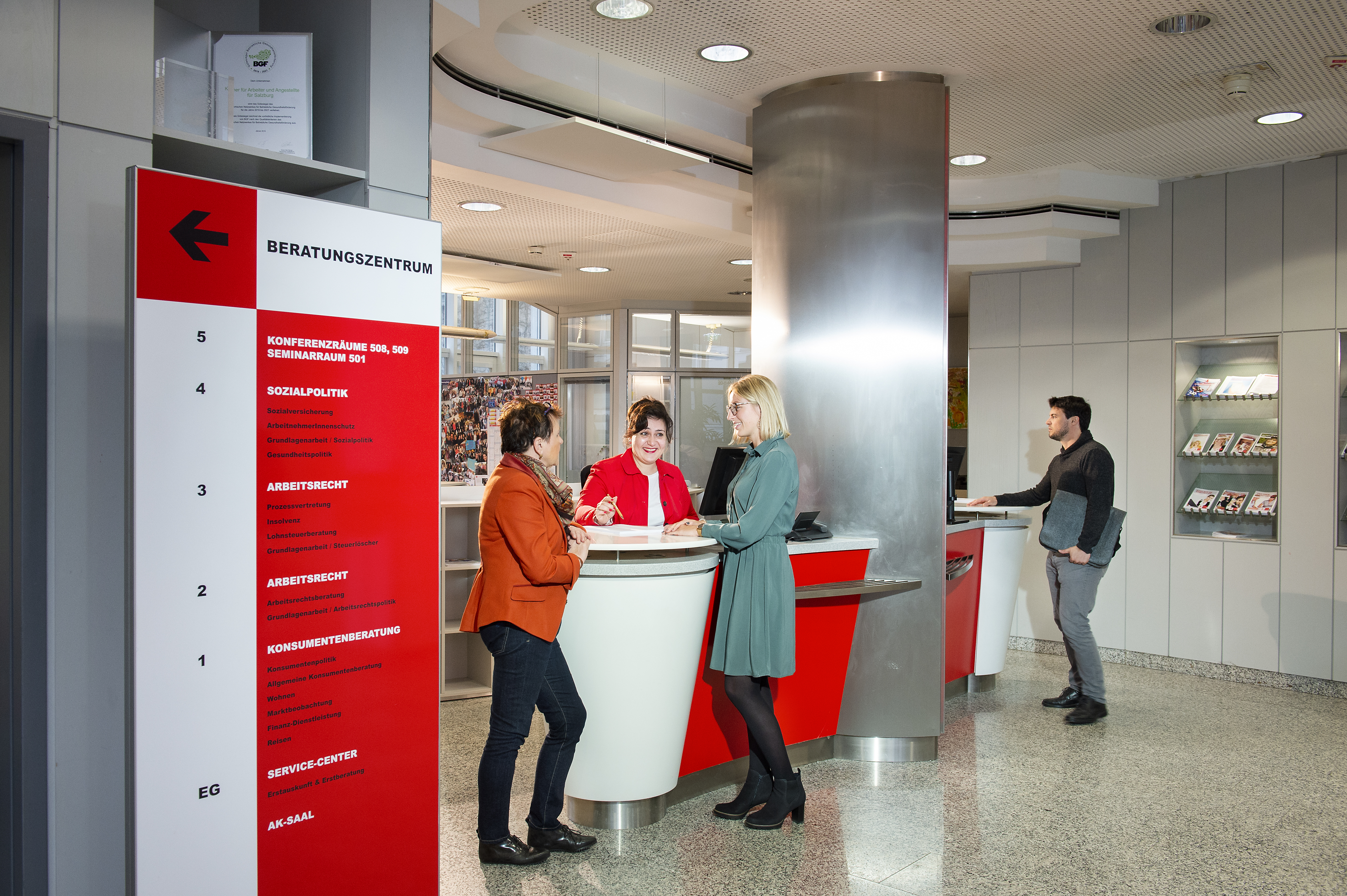 Arbeitsrecht, Arbeitswelt und Schule, Bewerbungscoaching, Bildungs- und Berufsberatung, Konsumentenschutz, Lehre mit Matura, Sozialversicherung, Steuerlöscher und Tauschbörse